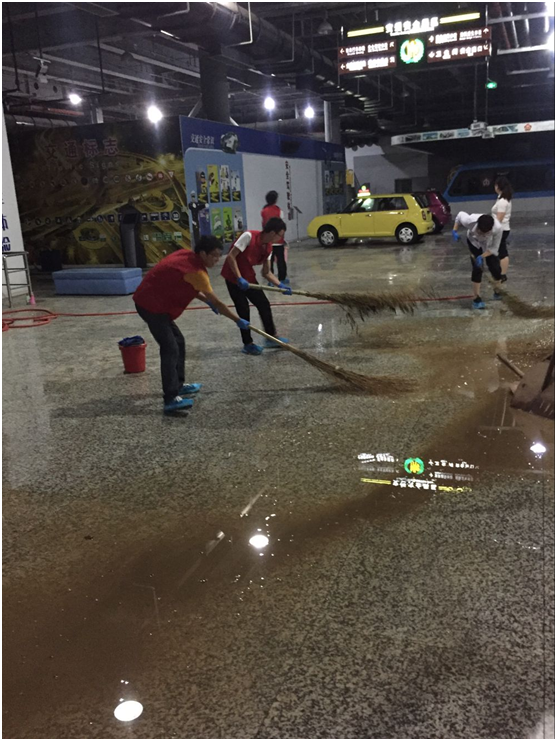 7月8日上午8点半,志愿者们准时到达了南京科技馆。由于多日的暴雨,科技馆负一楼积水严重,已暂时封闭清理积水。7月7日科技馆工作人员进行了抢救,清理了最深到小腿的积水,尽管如此,仍有大量清理工作需要完成。因此,志愿者们需协助工作人员进行清除淤泥、擦拭展品等工作。大家干劲十足,在工作人员的组织下分好组,迅速开始了打扫工作。部分志愿者展开合作,一人利用水枪将沉积的淤泥垃圾等冲在一起,同时三四名志愿者配合着用扫帚将垃圾扫引至下水道。扫水的工程量较大,两个多小时后,扫水工作才大致完成。除了地面,展厅里许多展品都遭到了雨水的浸染。志愿者们细心对展品进行了擦拭消毒,使其很快恢复了原样。一上午过去,志愿者们工作成果显著,科技馆负一楼恢复了洁净,志愿者们的工作也受到了科技馆工作人员一致的认可和感谢。