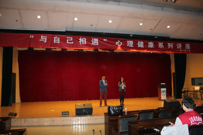 活动开始,主持人赵鑫为大家简短地介绍了演讲人,随后胡先生便开始了此次讲座。讲述内容围绕“认识自己”这一主旨,从了解分析各类情绪、情绪的处理和控制、人际交往的相处方式这几点分别讲解。演讲人列举了包括自身经历在内的真实案例,分析深入,贴近听众内心,语言中不乏幽默风趣,现场气氛热烈。在演讲结束后,进入观众互动环节,听众积极参与,向演讲者提出问题,主要包括青年人群的自我认知方面的困惑,均得到专业的分析解答。活动最后在主持人的结语中结束。