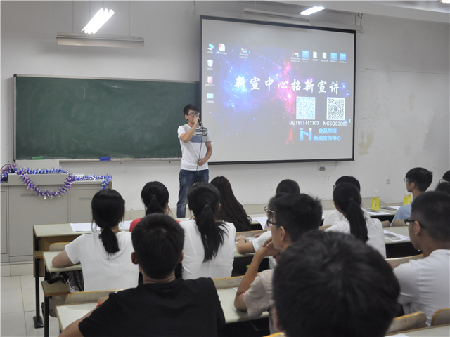 9月5日晚7:00,食品学院学联新宣中心招新宣讲会在同和309室如期举行,活动在轻松而热烈的氛围中拉开了序幕。