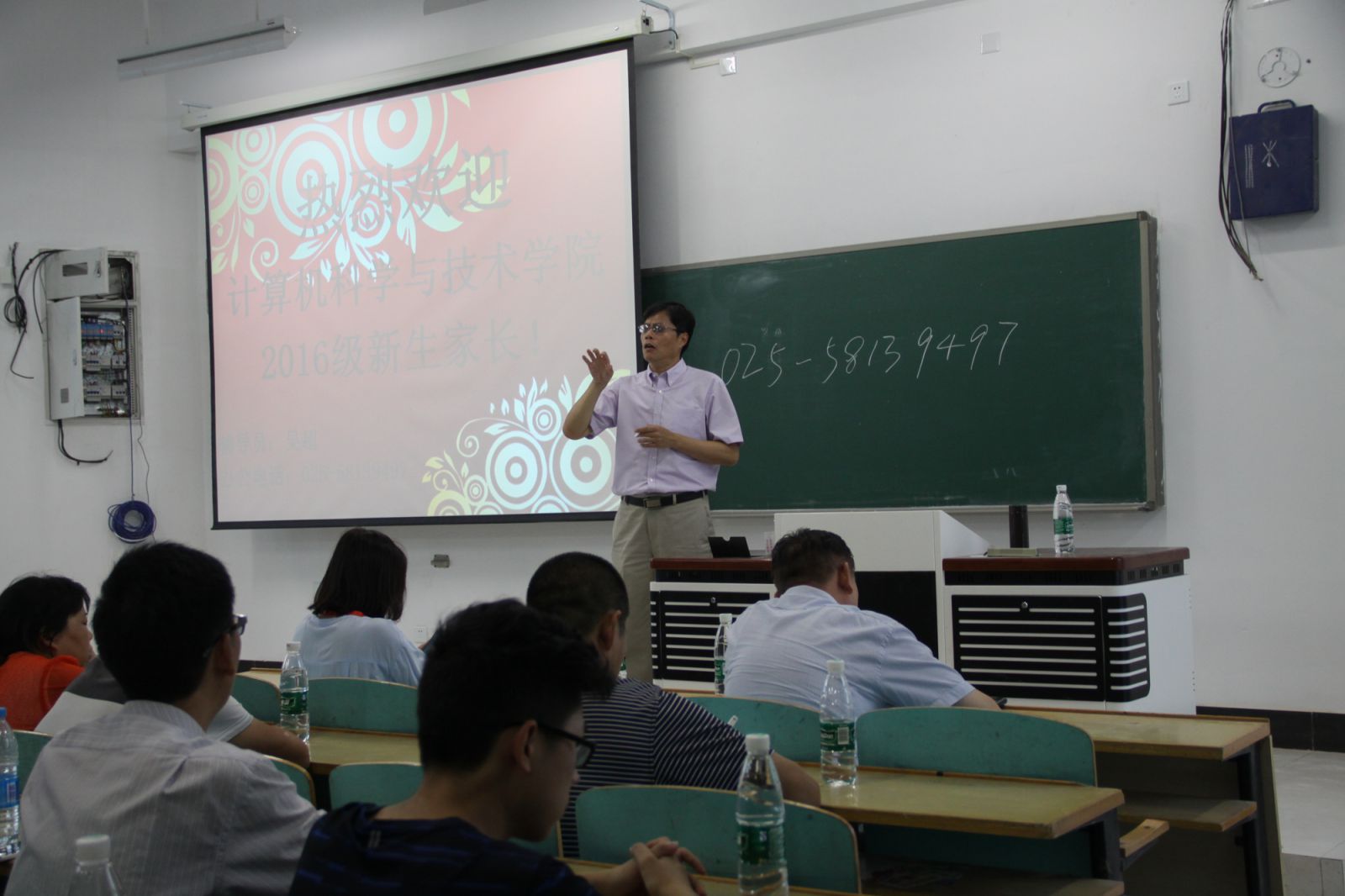 9月4日下午2点,我院在厚学300组织召开2016级新生家长会,以便增进学院与新生家长之间的沟通,为学院今后的教育管理工作奠下基础。院党委书记孙其珩、院长杨小健和院党委副书记郑娟出席了本次家长会,2016级新生辅导员吴超老师主持了本次会议。会上,郑书记、孙书记先后发言,表达了对新生以及各位家长的热烈欢迎。随后,杨院长向各位家长介绍了万博体育bet 的现状以及近年来取得的辉煌成绩,他坚定地向各位家长保证,南工是正确的选择。随后,杨院长具体介绍了计算机科学与技术学院的发展历史、师资力量、科研成果、就业情况。最后,杨院长与各位家长分享了自己的教育理念,希望与家长们共同努力,促进学生的进步与成长。