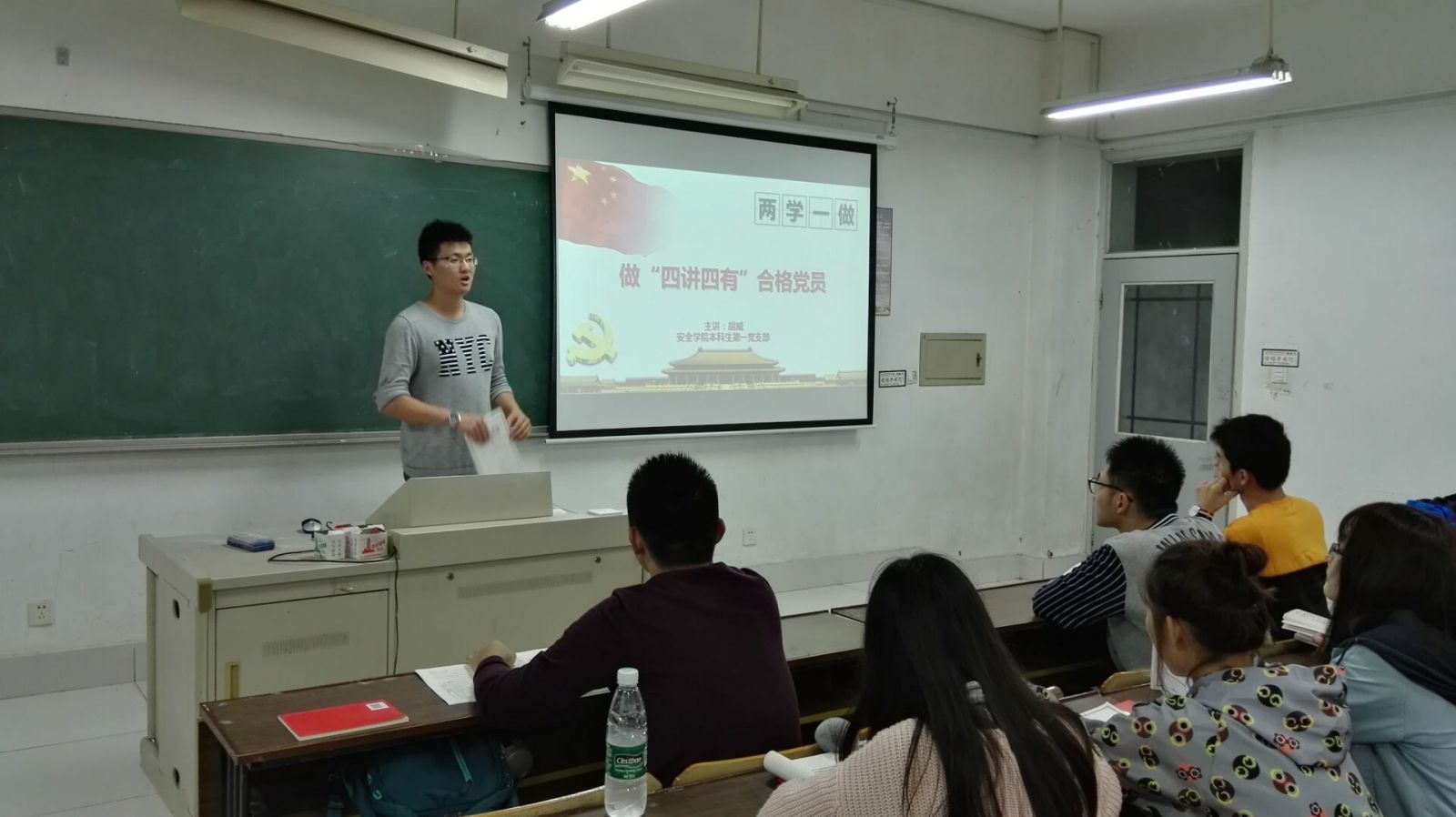 为认真落实“两学一做”学习教育的具体要求,10月18日晚,安全学院本科生第一党支部在仁智106举办了“做四讲四有合格党员”专题讨论会,会议由党支部书记陈万冕主持,支部全体成员参与了本次专题讨论会。