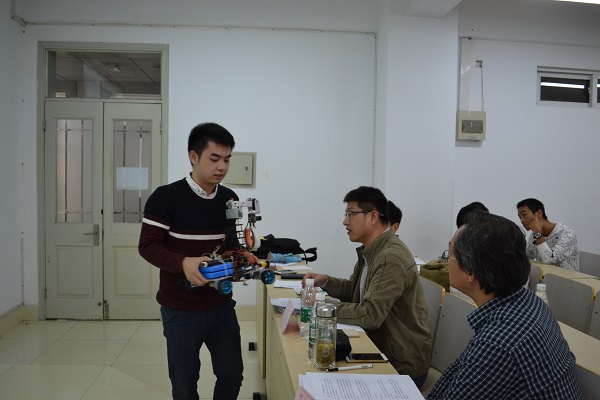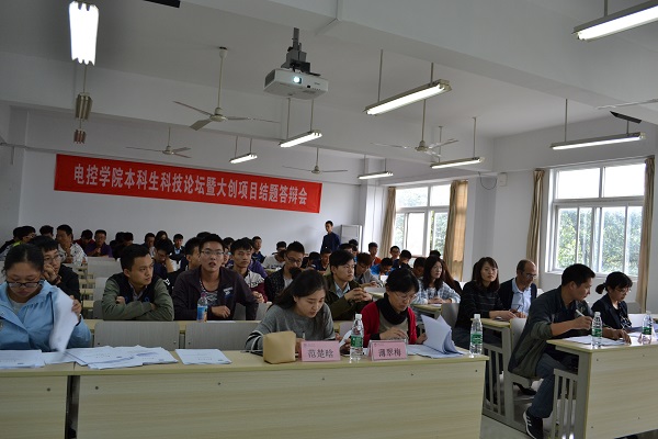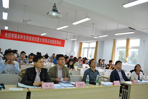 此次竞赛分为现场PPT展示和答辩两个部分。展示阶段,参赛团队向现场专家评委和观众详细介绍了作品的设计理念、实验方法和创新特色;答辩阶段,面对评委老师的询问,选手们多能从容应答,通过胸有成竹的阐述,充分展现了自己的独立创新能力,获得了评委的认可。同时评委老师也为各个作品提出了宝贵的改进意见,同时和同学们交流了一些创新方面的心得。评委老师认真评议,逐一提问及点评。最后,经过评委老师的认真讨论,最终汪欣眉同学所在团队的作品《轴向-径向磁通双凸极永磁电机研究》、郭川同学所在团队的作品《智能巡视小车》等4篇作品荣获本届科技论坛暨大创项目一等奖,刘冀宁同学所在团队的《大气压等离子体射》等8篇作品获二等奖,黄晨同学所在团队的《基于ZigBee技术下的智能照明系统》等8篇作品获三等奖。
