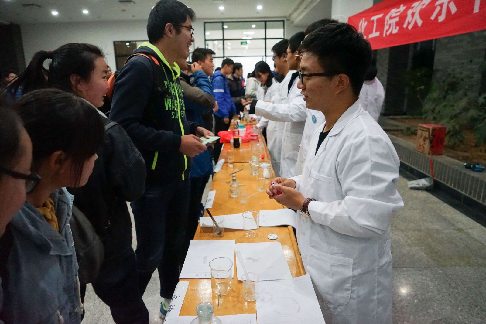 11月9日晚,为了让更多的同学了解、关心化学,感受化学的奇妙所在,化工院科协在浦江B楼门口空地和一楼大厅举办了以“在化学中感受乐趣”为主题的欢乐化学节活动。