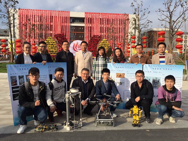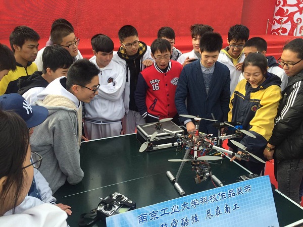 同时在海州高级中学的体育场上,由校团委精心组织了多个南工科技社团,带着自己的科技作品和说明展板参与了科技交流展示。六轴飞行器、循迹小车,3D打印,跳舞机器人,每一件学生自制的科技展品都吸引了众多同学的驻足观看,展台被好奇的中学生们围得里三层外三层。同时,南工学子们一直耐心地解答着同学们的问题,南工学子的创新智慧,感染了海州中学的每一位同学。