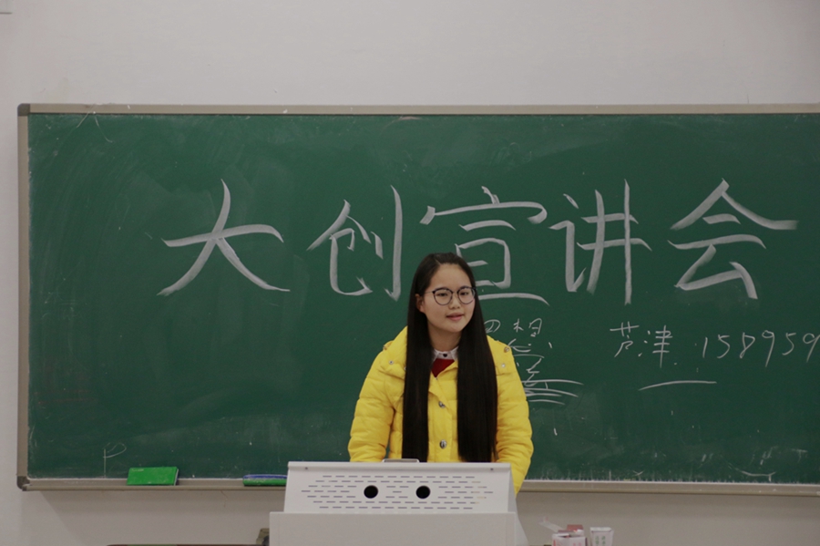 首先由竞赛部部长池港向大家讲解什么是大创。他从我校创新训练计划中的活动介绍、训练通知、时间安排、申请渠道、如何申请以及项目实施等方面依次展开,详细讲解。并向大家讲述了之前我院同学参加大创获奖的事例,使得现场观众好生羡慕,纷纷斗志昂扬,想要取得如此佳绩。接着由特有嘉宾向大家讲述他们的大创经历。他们每个人都有一个属于自己的,独一无二的大创的故事。因为他们的项目不同,所以他们所遇到的问题就会不同,经历也就不同。他们把在大创中遇到的问题一一列举出来,然后总结经验并将这些经验传授给现场观众,希望对同学们进行大创有所帮助,也希望同学们能克服困难,一直坚持下去。