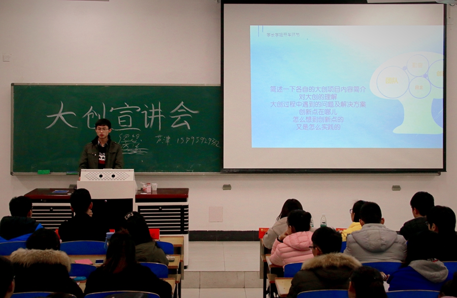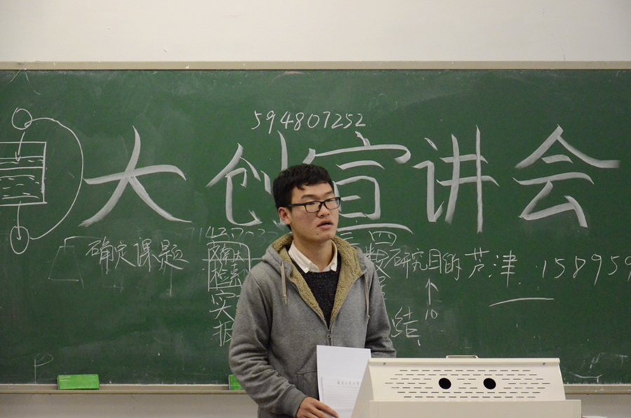 11月25日下午18:00由共青团万博体育bet 环境科学与工程学院委员会主办,环境科学与工程学院学生联合会竞赛部承办的“大创宣讲会”在厚学楼402教室顺利举行。万博体育bet 环境学院14级同学包留瑞,姜添,厉豪杰,芦津,李颖,和麒作为特有嘉宾出席本次宣讲会,来向大家讲述他们的大创经历。本次宣讲会主要面向15级同学,旨在通过实施国家级大学生创新创业训练计划,强化创新创业能力训练,增强同学们的创新能力和在创新基础上的创业能力,培养适应创新型国家建设需要的高水平创新人才。