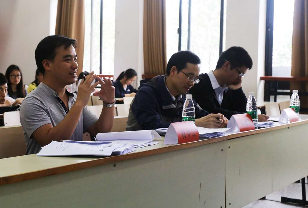 化工学院13级、14级、15级的近200名同学们组成的45支队伍在三个会场进行了精彩的答辩。在答辩会上,同学们将自己数月来努力的成果向评委及同学们做了展示,在B506会场,于驷勇同学关于《片状钛酸钾纳米材料的合成》的展示引得评委们一致好评,报告内容详实,研究成果丰富;在B504会场,钱心语同学关于《陶瓷纳滤膜用于水质净化》让评委老师们眼前一亮,纷纷赞其想法新颖、值得鼓励;在B406会场,郑博同学全英文演讲展示他们的课题《捕获温室气体CO2的新型多孔聚合物》,他精彩而有深度的宣讲和答辩将会场的气氛推上了高潮,不仅获得了同学们雷鸣般的掌声,更得到了评委们的高度肯定!