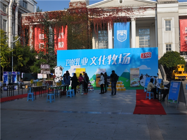11月5日和6日,由卫岗乳业有限公司和食品学院联合举办的“卫岗乳业牛奶文化节暨万博体育bet 食品科技文化节”活动在沉毅广场举行,本活动由卫岗公司人员和食品学院学生会共同举办。