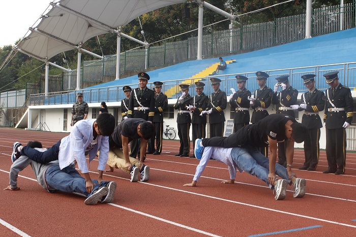 该次活动主要围绕弘扬爱国主义民族精神开展,首先,校国旗护卫队向我们展示了分列式、稍息、立正、跨列、踢正步等训练项目,英姿飒爽,青春激昂,展现了军人般坚毅的神采。其次,他们向我们展示了俯卧撑流水作业、四人排井字俯卧撑、双人叠加俯卧撑等有趣的体能训练项目,其间还有热情高涨的同学积极参与,体验了一番运动的魅力。然后进行的是升旗仪式,沐浴在晨光中的同学们站着挺拔的军姿,表情肃穆,共同注视血染般的国旗冉冉升起,共同见证了这庄重的时刻,最后,学联体育部干事张晓凡发表演讲《爱国,是一种信仰》,阐述了爱国是一种信仰的缘由及意义,演讲具有感染力,激发了同学们更深的爱国情怀。