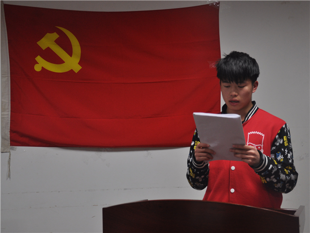 大会在庄严的国歌中拉开帷幕。会议主要讨论耿强、黄政瑜两位同志成为预备党员的问题。在会议中,发展对象首先宣读了他们的入党志愿书,汇报自己对党的认识、入党动机、本人履历及需要向党组织说明的问题,随后由支委会报告对申请人审议的情况,并由与会人员对申请人能否入党进行充分讨论。在讨论过程中,同志们实事求是,对发展对象的学习、工作、生活等各方面予以了肯定,并给出自己的建议。接下来由出席会议的具有表决权的正式党员就发展对象能否发展成为预备党员的问题进行表决,两位同志均全票通过。随后,由支委会宣读申请人成为预备党员的决议。各位申请人耐心听取并虚心接受同志们提出的建议,秉承有则改之,无则加勉的原则,表明了自己的态度,并提出了自己的目标和改进方向。两位同志在深刻剖析自身不足之后,还在会上向为自己指出不足的同志表达了感谢。会议最后,本科生第三党支部书记蔡银莲对新党员的加入表示了热烈的欢迎,向两位新预备党员颁发了党徽并对他们提出了要求,希望他们能够在平时的生活中注意自己的言行举止,以高标准严格要求自己,在群众中起先锋带头作用,并时刻加强对理论知识的学习。