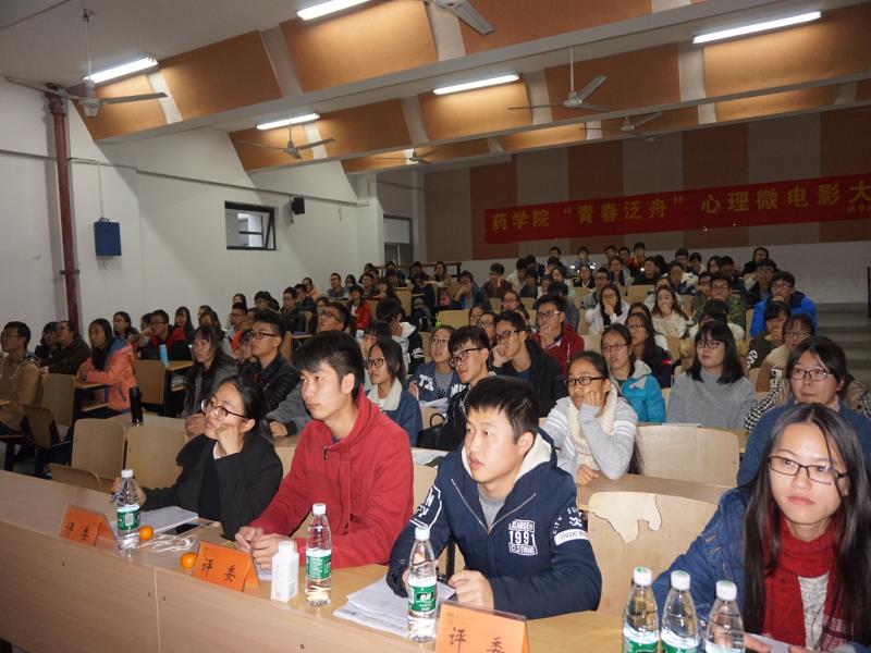 为了能够良好的传播积极向上的生活及学习理念 ,同时促使同学们能够深层次认识到心理健康的重要性。11月30日下午,药学院成功举办了以“青春泛舟”为主题心理微电影大赛。同学们通过微电影作品的形式,将现在大学生生活中的常见心理问题反映出来,让大家能有所思,有所悟。本次大赛由药学院新生辅导员徐元龙老师主持,校大学生心理健康教育协会三名同学担任评委。