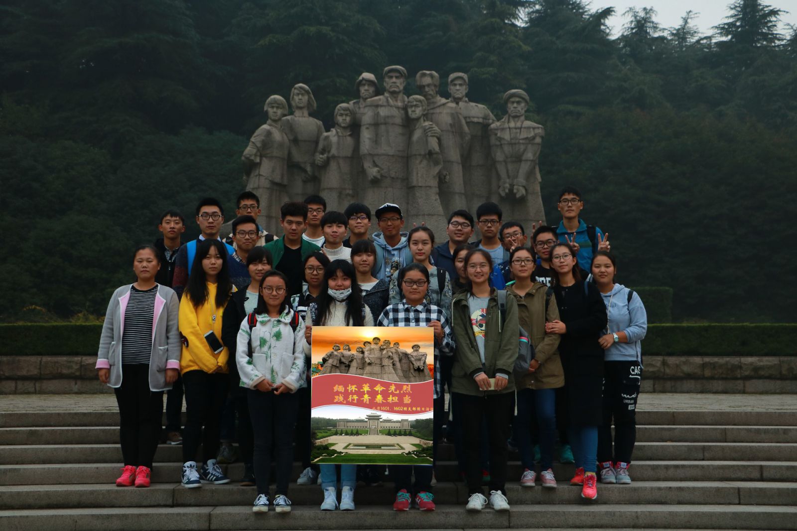 水质1601、1602团支部第一次团日活动于11月18日下午在雨花台烈士陵园成功举办。本次活动秉承“缅怀历史先驱,践行青春担当”的主题,旨在缅怀革命先烈,弘扬爱国主义精神,加强同学们对社会主义核心价值观的理解。
