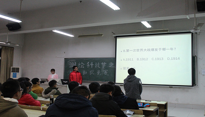 为丰富大学生的万博手机版官网登录网页 生活,拓展同学们的知识面,提高同学们的文化素养,2016年11月24日晚,由测绘科学与技术学院团总支主办的趣味百科知识竞赛在仁智216教室成功举办。