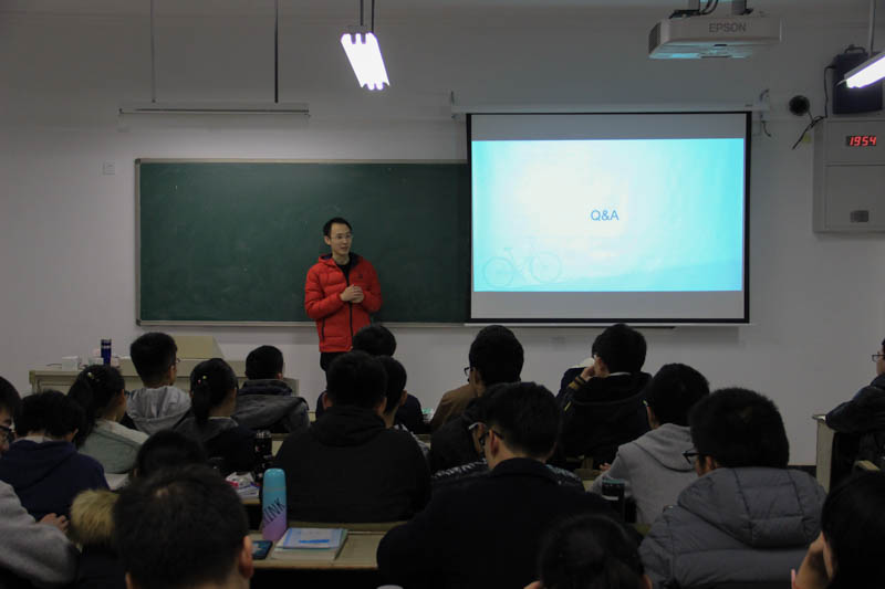 周康以几个问题展开讨论——你真的热爱编程吗?如何学习编程技术?该学习哪种编程技术?怎么找工作?针对这些问题,周康一一为在场同学进行剖析,以一个过来人的身份为同学们指明方向。随后,交流会进入高潮,同学们开始自由提问。在座的同学中不乏一些热爱编程的同学,他们向周康提问了很多技术方面的问题,周康都详细作了解答,问答部分大约进行了一个小时,同学们十分积极、热情高涨。