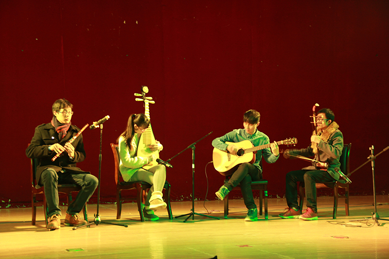 活动开始,主持人首先介绍了本次活动,随后第一个节目《秦皇岛》的表演者登台。其中最亮眼的节目就是素有“小吉他”之称的尤克里里的表演。表演者一登场,台下的观众就响起一片欢呼。演奏时分,琴声悠扬,节奏明快,观众都忍不住鼓掌。演奏结束,更有漫长响亮的掌声送表演者离台。本次晚会一共有11个节目,晚会的节目不仅仅有吉他表演,还有钢琴、舞蹈等元素的加入,多种元素让观众们眼前一亮。这次晚会,表演者们淋漓尽致的表情让观众们心满意足。后勤人员也积极地忙碌,为表演的正常进行保驾护航。美好的总是短暂的,这句话一点没错。不知不觉间,晚会在主持人的结束语中正式结束。