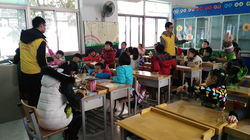 下午一点,志愿者们在校门口集合,并一同乘坐公交车前往察哈尔小学。下午两点半,在与老师沟通后,志愿者们就正式开始了本次支教活动。首先,志愿者们向小学生展示了预先准备好的ppt并给他们科普了一些心理方面的知识。接着,志愿者们和小学生们玩起了心理游戏。总体来说,此次爱心支教取得了很大的效果。在上课的过程中,志愿者们还与同学们一起做了“听命令做动作”和“你做我猜”等小游戏,小学生们表现出极大的兴趣与好奇心并积极主动的举手参与,争着回答问题,课堂气氛非常活跃。同时,成员们也不禁对小学生们单纯、可爱、充满好奇心等品质而触动,并对表现积极的同学进行糖果奖励。下午3点整,随着小学老师走进课堂,活动圆满的结束了。依依不舍之情浮现在学生们和志愿者们的脸上,志愿者们纷纷表示此次活动颇有意义,小学生们可爱的脸庞铭记在每一个人的心中。活动结束后,大家一起在小学门口附近合照留念。