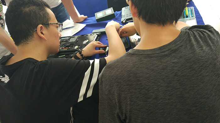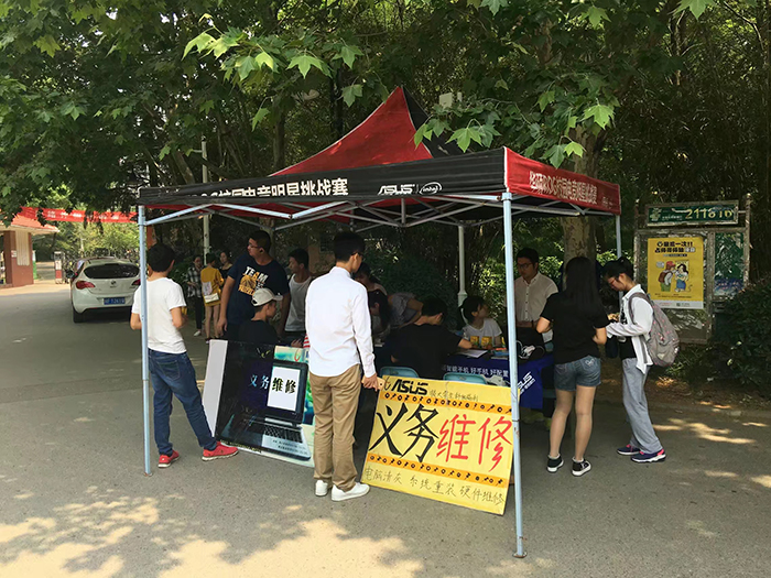 本次活动持续两天,在烈日炎炎下,依旧有条不紊地举办着。从20号早晨9点至下午4点三十分的东苑摊位和21号早晨9点至下午4点的象山摊位。两天活动,为广大师生解决各种电脑,手机等电子产品问题。