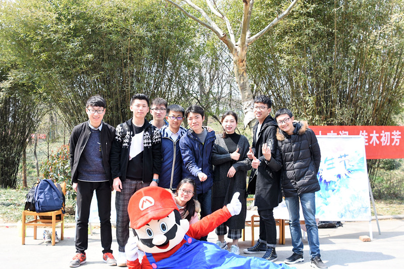 “春土芳润,佳木初妍,土木女生,才慧无双”。 3月7日上午,土木工程学院学生会的成员就在檀香宿舍区外挂起了横幅表达对土木女生的祝福。另一队则架起许愿墙,让女生们把自己的心愿写到许愿墙上。当手捧玫瑰花的马里奥人偶出现时,这个巨大的人偶瞬间吸引了同学们的注意力。马里奥向女生们送上了玫瑰和祝福贺卡,女生们接过玫瑰和贺卡后开心地与马里奥合影留念。