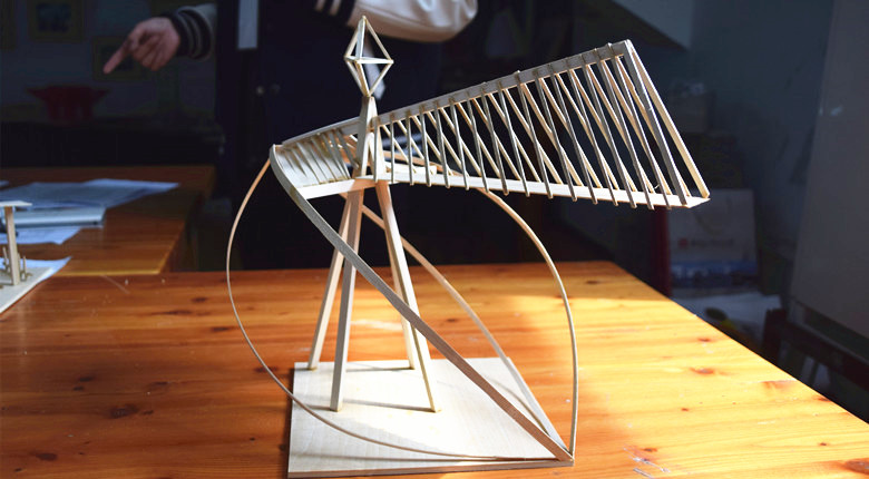 下午14:30,比赛进入答辩环节,每小组选派一名选手上台陈述该小组的作品,包括作品的设计理念、主体结构、用途和材料应用等。评委老师听完介绍后与选手交流,进一步了解作品,指出不足并提出完善建议。其中,少锦队的作品《乌托邦云台》以其新颖独特的造型,结实合理的结构,完美的设计理念赢得了评委的一致好评。