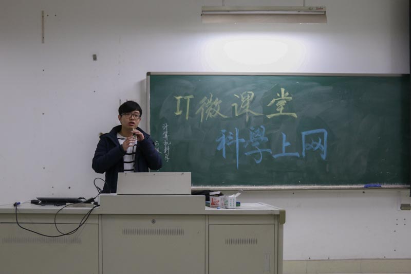 随着技术的飞速发展,网络已成为每个大学生学习生活不可或缺的重要平台,不少同学对互联网、网站的组成与建立、软件使用等产生了浓厚的兴趣。为了给广大同学提供学习和交流的平台,计算机科学与技术学院于3月15日举办了本学期第一次IT微课堂,主讲内容为计算机网络,主讲人为我院绿荫工作室主要负责人张也弛同学。2016年,在老师的帮助下开办了自己的创业公司,工作内容主要是网页前端制作,在这些方面有着丰富的经验。