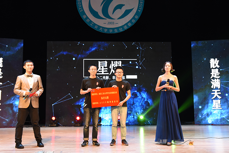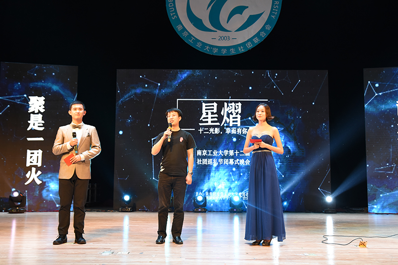 5月21日晚六点半,由共青团万博体育bet 委员会主办,校学生社团联合会承办的“星熠——万博体育bet 第十二届社团巡礼节闭幕式晚会”在江浦大礼堂隆重举行。整个会场座无虚席,南工学子济济一堂,共同参加了此次晚会。出席本次活动的嘉宾有校团委文体宣传部部长吴杰老师,校文化艺术中心常务副主任许鹏老师,各高校学生代表,以及历届校学生社团联合会成员。