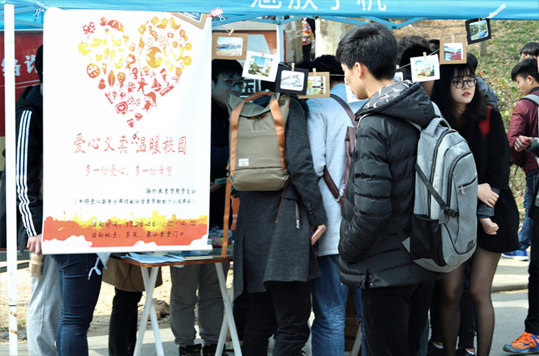 为了弘扬雷锋助人为乐、无私奉献的精神,帮助急需帮助的人士,海外教育学院学生会于3月2日至3日,在象山食堂、东苑食堂前举行“爱心义卖·温暖校园”公益活动。义卖品从文具、到雅思学习资料,从多肉植物到零食,应有尽有。有专为本次活动购买的,有同学无偿捐献的,还有电子(国)1501班唐硕同学专为本次活动设计南工校园明信片。活动得到广大师生的积极支持,大家纷纷慷慨解囊,为爱心贡献贡献自己的力量。学生会工作人员则将每一笔爱心购买都记录在册。