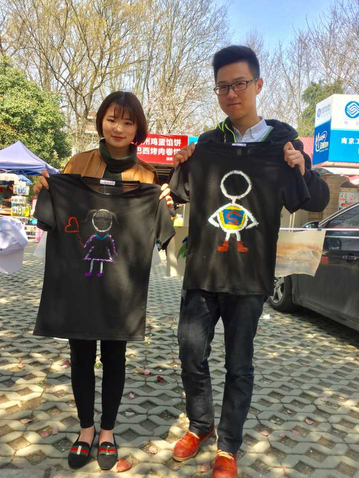 在活动现场,心协准备了白纸、扇子、T恤、帽子、水彩等道具供同学们创作。几张方桌整齐地摆在香樟树下,不一会儿就吸引了大量路过的同学。随意摊开的画布,尽情泼洒的水彩,让坐到画桌前的同学们沉浸在自己天马行空的世界里:白T上的金刚狼,带着中国水墨独有的洒脱大气;帽子上精心描绘的字母,暗含油彩神秘的俏皮不羁;点点淡墨,一支红梅在扇面上含苞待放……创作完后,大家脸上都露出了满意的笑容,不少同学将自己的作品放置东苑展览,引得行人驻足欣赏,也有很多同学将作品带回,为这个春天留下宝贵回忆。