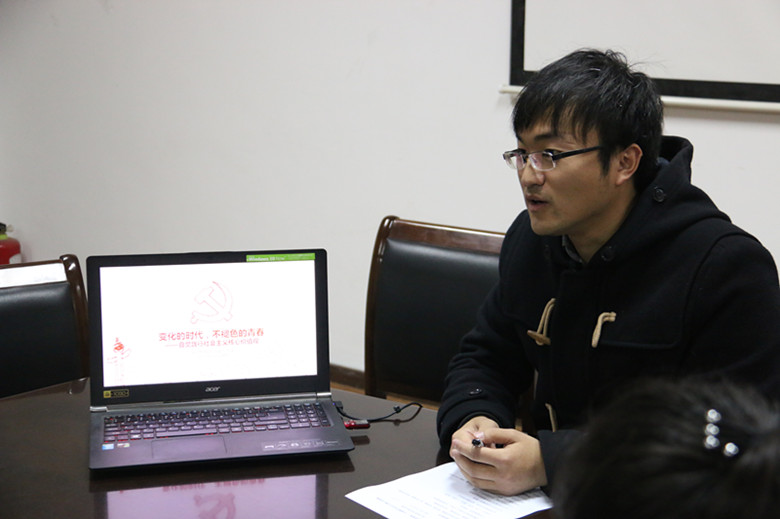 3月31日晚,海外教育学院团委在明德楼108会议室举办学习总书记讲话,做合格共青团员主题团课。本次团课以“变动的时代,不褪色的青春,自觉践行社会主义核心价值观”为主题,学院团委刘海全老师带领团员青年共同学习2014年五四青年节,习近平总书记在北京大学师生座谈会上的讲话《青年要自觉践行社会主义核心价值观》。