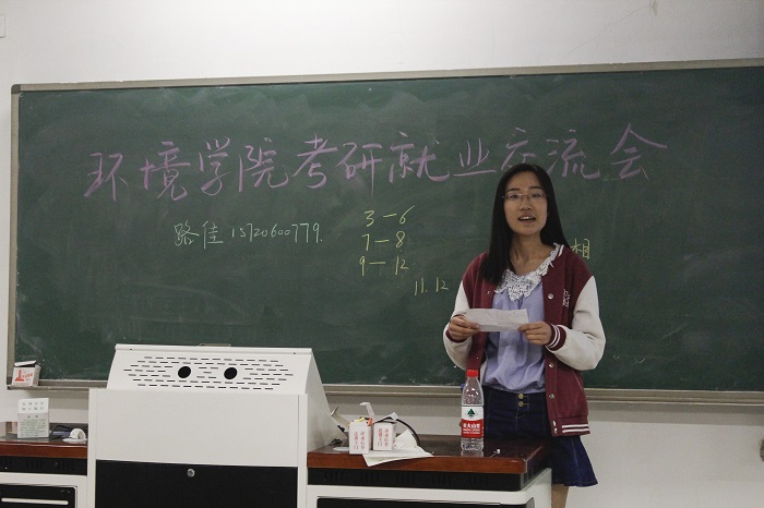 为了解决正在备战考研的大三同学的考研困惑,促进本院学生的学习热情,明确本专业的学习目标和就业方向,环境科学与工程学院于4月27日在厚学楼102室举办环境科学与工程学院考研就业交流会。来自学院大四年级的王迪森、徐炳乾、路佳、张静、周露、李昱等同学给同学们在考研学习和就业方面讲述和介绍了他们的考研经历和考研学习方法。