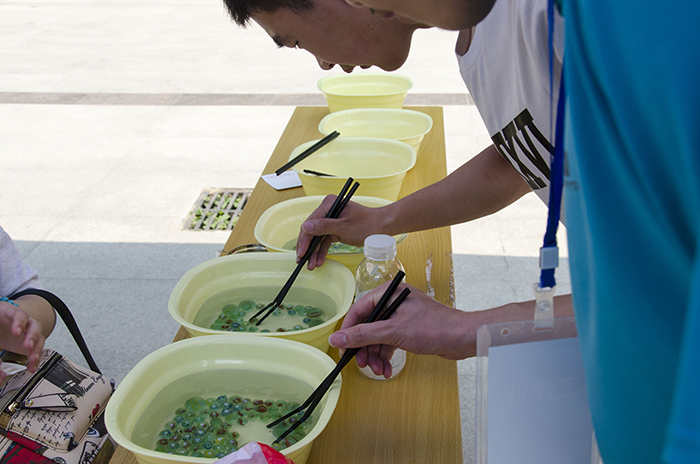 本次校园科技吉尼斯分趣味赛和竞技赛两类,趣味赛有数独、筷子夹珠子、绘面、24点等项目,竞技赛有木条承重、纸柱负重、举电急焊、模拟飞行等项目。炎炎夏日依然不能阻挡同学们的热情,现场气氛活跃。趣味赛激发了很多同学的兴趣,绘制面具成为许多同学感兴趣的项目,而看似简单的筷子夹珠子难倒了不少人。同学们参加项目盖章后还得到了小奖品。
