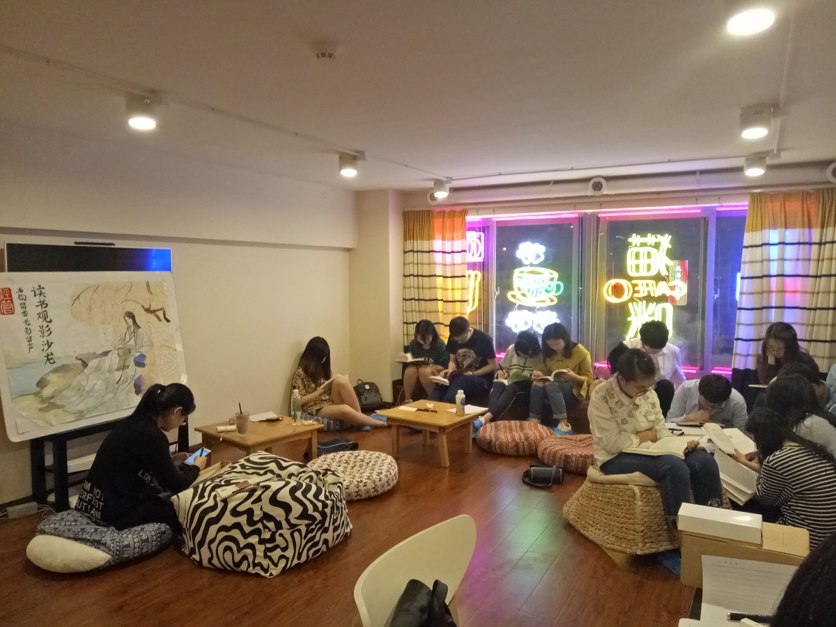 活动分为才女推荐、回味经典、书写感悟三个部分。首先,各位文学爱好者们分享了各自最喜爱的民国才女,并对这些才女的经典作品进行简单的分析和推荐;随后,大家都全神贯注的投入到书籍的阅读当中,在书香里体悟才女们的情怀与人生。最后,大家纷纷在纸上写下了自己的体悟。其中一位同学指出:这些奇女子是民国一道独特的风景线,她们融传统与现代为一体,岁月都难掩其才情与本色。