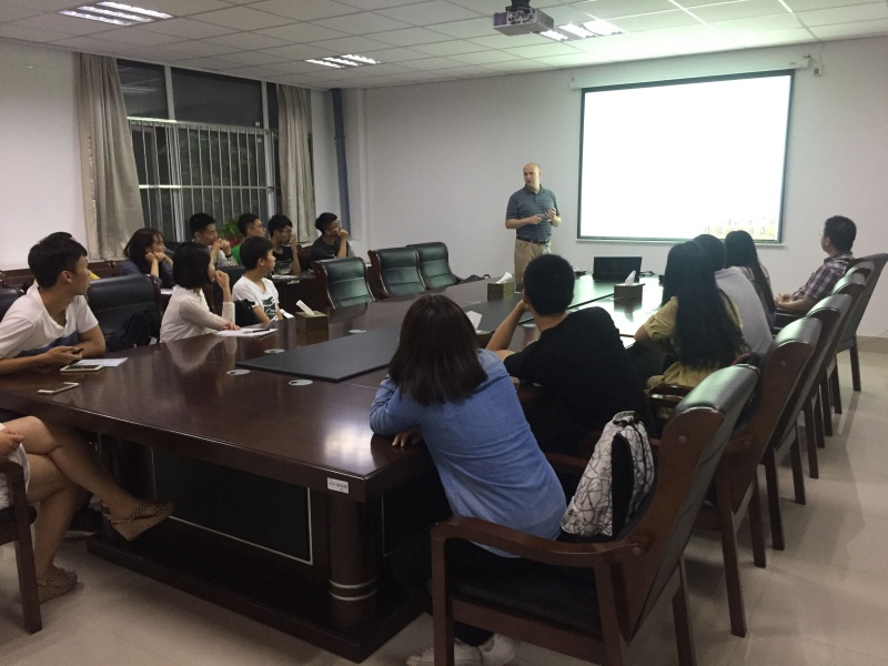 面对二十名中国大学生,Eric McDonald教授展现了无比的耐心。他对海外留学生活向同学们进行了图文并茂的展示,强调介绍美国高校在人才建设方面的方法,一改中国学生对国外学校学习非常轻松的错误想法,激发了同学们出国刻苦学习的斗志,学习主动钻研精神,明确奋斗目标,立志为国家药学事业的蓬勃发展作出应有的贡献。然后,教授又就该学校录取中国学生所要求的托福成绩,大学平均绩点进行了详细的介绍,让同学们对录取该校的难易度有了客观的了解,为出国留学做好充分准备,也更加坚定了为我国自主研发药物献计献策的决心。