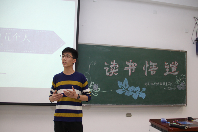 为丰富同学们的课余生活,让同学们感受到读书的魅力,在“5.25我爱我”心理健康教育月到来之际,计算机科学与技术学院心理协会特举办读书悟道活动,我院的多位同学踊跃报名,积极参与。