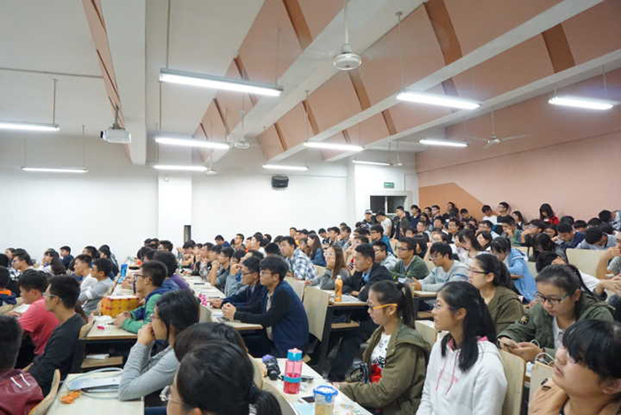 在暖场视频播放后,社长赖文韬就开始他今天的主题演讲——Free。演讲内容主要围绕三个板块:1、创意思维,设计生活。通过生活中的Logo、药丸水瓶等例子,阐述了Free的含义。2、打破框架,设计生活。许多设计都来源于设计师敢于打破框架,敢于创新。3、回归本质,极简主义。作品或者画面看似简单,却往往有着更深刻的思想内涵,极简的风格一直是大家较为喜欢的。社长以幽默风趣的语言,把从Prezi到CATAL的伪教程讲得生动形象,都时刻吸引着台下同学们的目光。宣讲过程中,不时会有奖问答的互动环节,题目由普通到发散,奖品也丰厚而有意义,受到了同学们的欢迎。而同学们的积极主动也让老一届工E人们倍感欣慰。