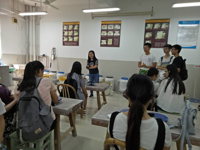 上午8点30分,所有参加人员到达实验室。首先,由葛老师带领大家参观并讲解了实验室内的各项物品,包括拉坯机、转盘等陶艺制作要使用到的工具、往年陶艺大赛中同学们制作的优秀作品、卓越班学生制作的优秀作品、3D打印机及优秀3D打印成品,精致又多样的陶艺作品让同学们大开眼界。然后由材料院学生联合会科协中心的同学为大家大概介绍了陶艺制作的步骤并分享了他们在平时制作中的心得与体会,使同学们都受益匪浅。