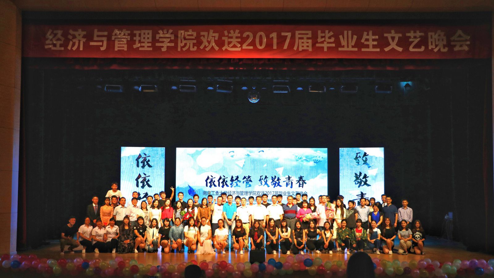 6月8日晚,经济与管理学院在江浦大礼堂隆重举办欢送2017届毕业生文艺晚会。校团委和经济与管理学院相关负责人、学院各系老师代表、宿管老师代表和2017届毕业生共同观赏了本次晚会。