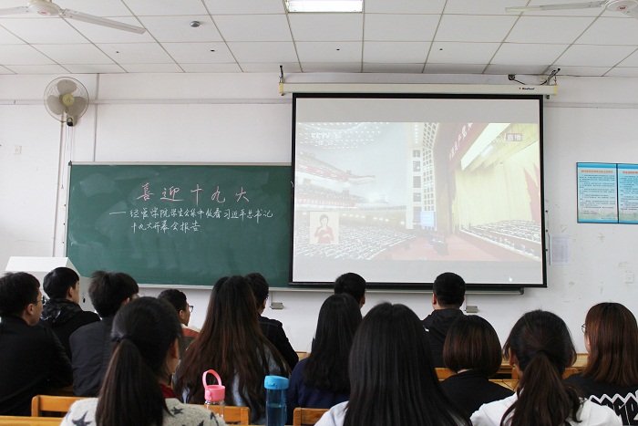 10月18日上午9时,中国共产党第十九次全国代表大会在北京人民大会堂隆重召开。经济与管理学院学生会组织部分学生骨干于浦江A楼601教室观看此次开幕式直播。
