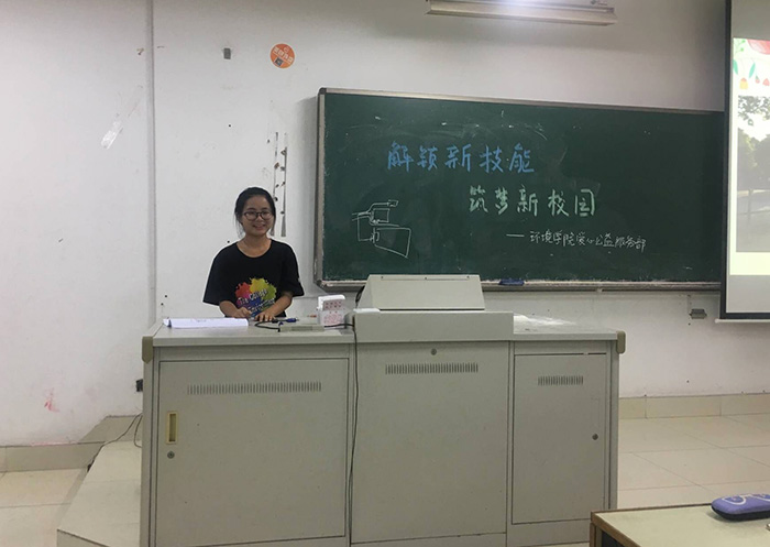 2017年9月5日晚上七点二十到八点,环境科学与工程学院爱心公益服务部于同和楼209室开展了“解锁新技能,筑梦新校园”活动,活动由爱心公益服务部部长张晓婷主持,环境学院2017级全体同学参加了这次活动。