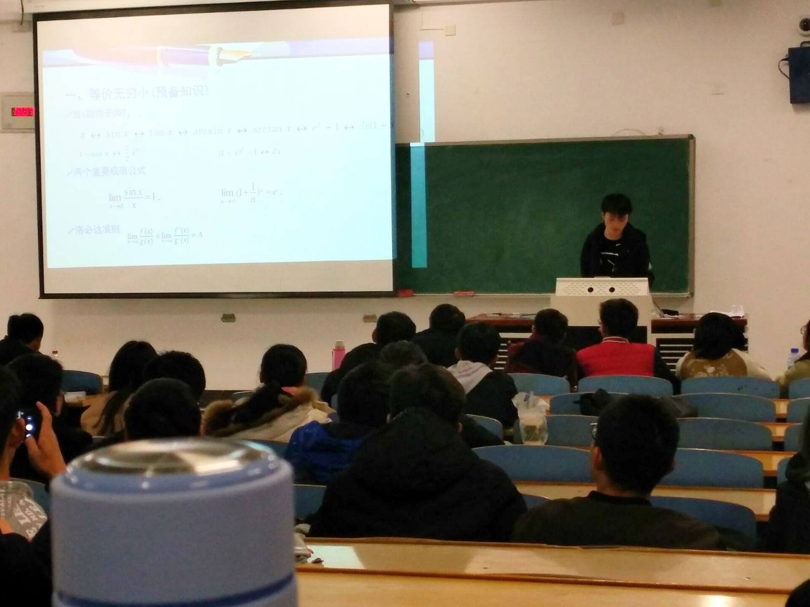首先,主办负责人黎小丽同学简单介绍了此次主讲的两位同学,随后熊小宇便开始了针对大学高数中极限的求解方法的演讲。从求极限的公式、准则和一些极限的题目分别演讲复习。在解题环节强调重要的是解题的思路方法,将每一个例题层层分析,力求每个人都能听懂。接下来黄磊同学从无机化学的考试题型和每个题型会涉及的考点进行讲解,着重讲解了酸碱滴定法应用中的混合碱的判别和计算方法。同时,他还提出了四点要求,分别是:突出重点,提高效率;重视基础,稳扎稳打;熟练题型,注重练习;查漏补缺,冲刺高分。在演讲结束之后,两位同学与大一新生展开互动,共同探讨大学目标和学习方法,现场气氛热烈。