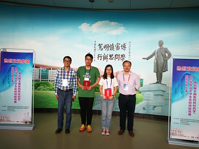 11月8日至10日,由教育部高等学校药学类专业教学指导委员会、教育部高等学校实验教学指导委员会、高等学校国家级实验教学示范中心药学学科组主办,中山大学承办的“第五届全国医药院校药学专业大学生实验技能竞赛”在广州举行,共有来自全国90余所高校的近200名选手参加了竞赛。为努力提高和强化本科生的实践能力,药学院选拔出两名选手,由药学系主任王玉斌老师和院学生事务办公室主任徐元龙老师带队前往参加了比赛。