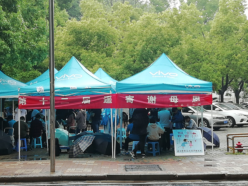 活动当天,由于天气比较恶劣,一直在不停的下着大雨,活动决定被取消,但是工作人员们力排万难,最终促使活动得以顺利举行。活动开始后,尽管天气不理想,但还是不时有同学停下脚步给母亲写下一份充满真挚感情的书信。最后,部门里的同学也忍不住纷纷拿出笔给母亲写了封信。天空是灰暗的,但场面却是温暖的。一封信虽没有多少重量,但其所承载的感情却重若千金。