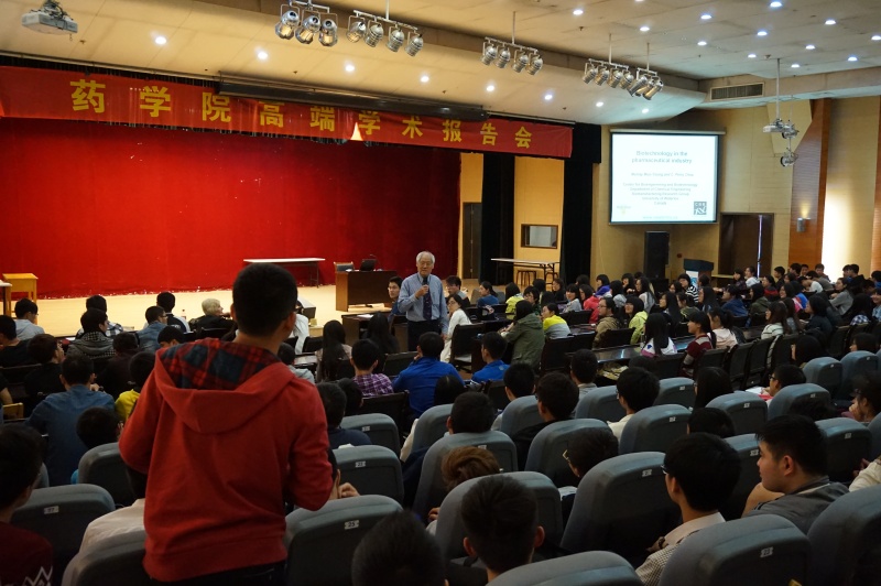 为了让同学拓展眼界、更加了解药学专业国际研发态势,激发科技创新潜力,2015年5月11日16:00时许,药学院院长特邀加拿大皇家科学院院士、滑铁卢大学化工学院教授、《Biotechnology Advances》等书刊主编 Murray moo-young先生于浦江报告厅向全院同学举办了一场高端学术报告会。