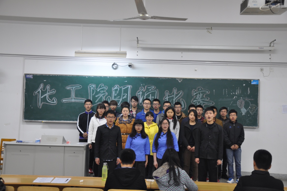 2014年4月7日,由校团委主办,化工学院分团委承办的团支部风采展示朗诵比赛在浦江B305教室顺利举行。本次大赛旨在展示各班级精神风貌,弘扬社会主义核心价值观。学院分团委书记王郁超老师、分团委副书记周成、王冠中老师以及院学联团总支主任作为评委参加本次活动。