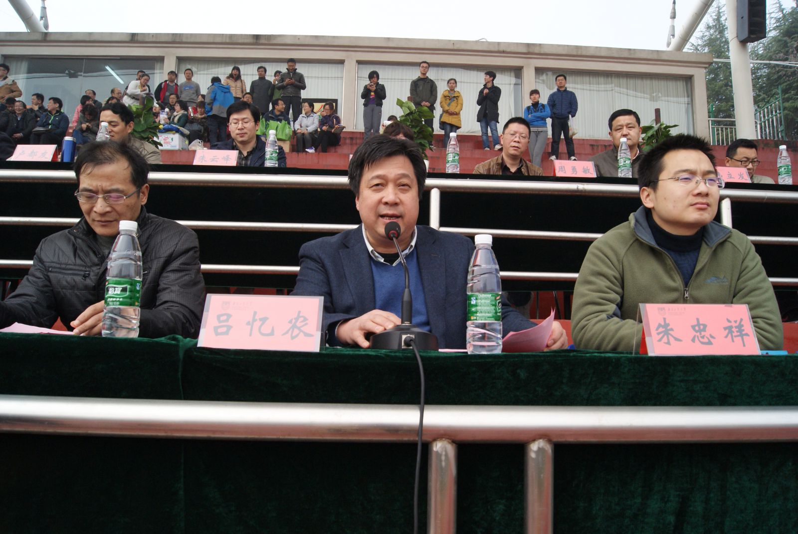在这阳光明媚的日子里,太阳穿过朦朦的雾气照在田径场上。材料学院第九届运动会暨第七届体育文化艺术节开幕式于3月21日在江浦校区田径场隆重举行。校工会主席刘思华老师,校体育部党总支书记陈建华老师,校学生工作处副处长张涛老师,校团委副书记朱忠祥老师,国家973首席科学家、材料学院院长沈晓冬教授,材料学院党委书记吕忆农教授等其他党政领导及各系系主任,各办公室主任出席了开幕式。