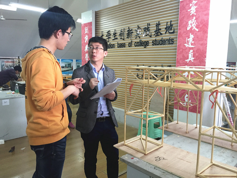 万里老师作为评委代表对参赛作品进行点评,并提出建议,各参赛作品应充分利用材料特性,在做工上不断精细,再加之合理的节点设计。万老师鼓励同学们以参加创新竞赛为基础,在今后的相关课程中进行更全面的学习。