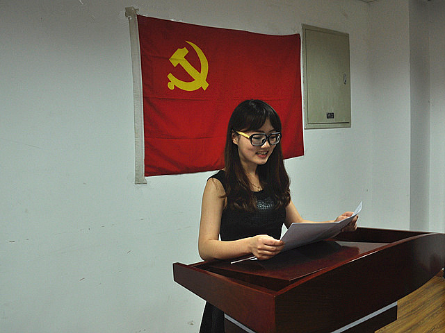 在庄严的国歌声响起后,转正大会正式开始。肖坤鹏等九位同志轮流宣读入党志愿书,向党组织阐明了在预备期内自己思想、学习、工作等方面的情况。在宣读过程中,他们明确地说出了自己的优点和不足之处,并向党组织提出自己的转正意愿。支部对申请人进行审议后,然后提出群众座谈中班级同学的意见,并就这九位同学的转正答辩表现进行总结以及公布得分。九位同志的入党介绍人和与会人员对他们的优缺点充分讨论之后,肯定了他们优秀的一方面,同时也指出了他们自身存在的一些问题,分别对他们提出了十分中肯的建议。九位同志虚心接受建议,一一领会,决定在今后的学习生活中逐渐完善和提高自我。最终,提出转正申请的同志在投票表决中全票通过。悠悠《国际歌》奏响时,就代表着这九位同志从这一刻起正式成为了一名中共党员,他们将引领食品院最先进的思想发展方向,也将继承并发扬食品院的优秀传统。