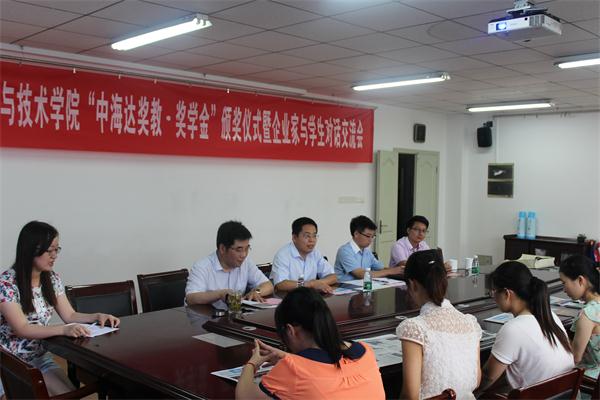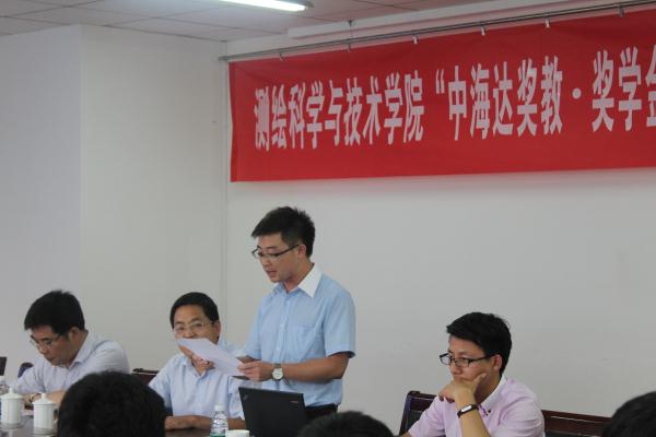 会议伊始,中海达公司总经理李典斌为大家详细介绍了关于中海达公司的背景资料、发展方向、公司规模等,让大家对中海达公司有了进一步的认识。紧接着,李典斌经理与段然堂老师共同宣读了“中海达奖教·奖学金”获奖名单,为徐燕、赵静、王尚纯等获奖同学颁发了奖状。此外,他对同学们提出了几点要求。首先他要求同学们定要戒骄戒躁,能继续在学术上更上一层楼,拿到奖学金后能够合理利用,用之其所。其次要有一颗感恩的心,接受别人帮助的同时也怀着一颗感恩的心去帮助别人,能够饮水思泉。最后他希望没能拿到奖学金的同学们不要气馁,继续努力以获取奖学金。到场同学们都纷纷鼓掌祝贺获奖同学们,获奖同学们代表王尚纯等同学分享自己的获奖感言,他们十分感谢中海达公司对学院以及他们自身的支持,让他们能够得到更好的资源,并且表示拿到奖学金后一定会合理安排利用,如用来买考研辅导书等,不会辜负公司的期望。