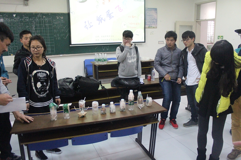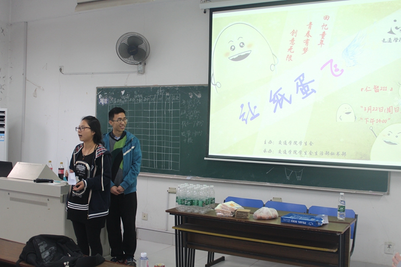 2015年3月22日下午14:00,交通学院学生会在仁智211举办了“让纸蛋飞”科技活动。本次比赛分为三轮,第一轮纸飞机,第二轮搭纸桥,第三轮保护鸡蛋。