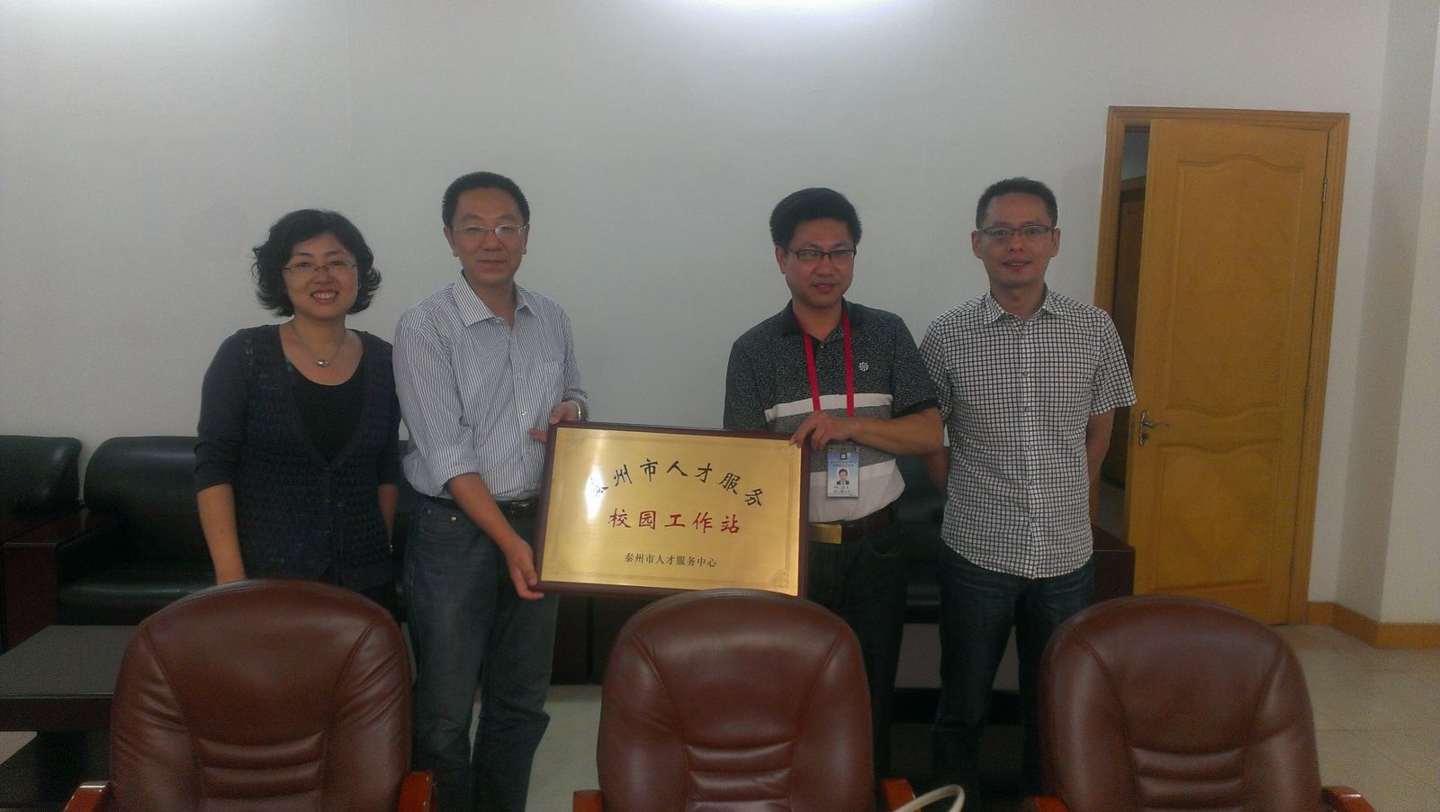 张琪老师、熊强老师对南工2015届毕业生总体情况做了简要介绍,并针对泰州医药城的需求重点介绍了制药、药学、药剂等专业毕业生状况。泰州市人才服务中心张荣主任、泰州市人力资源和社会保障局印锐军处长详细介绍了泰州企事业单位岗位需求现状,表示对南工学子就业给予最大的支持。在友好和谐的气氛中双方达成合作意向,泰州人才服务中心将带队地方企业参加南工秋季校内招聘会。万博体育bet 成为泰州市人才服务中心校园工作站。