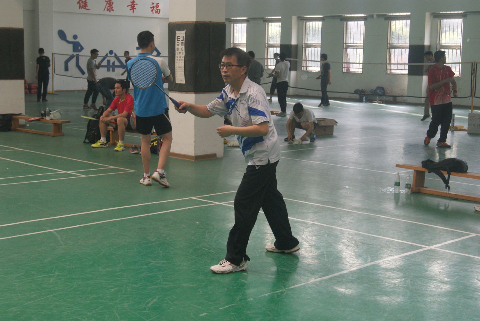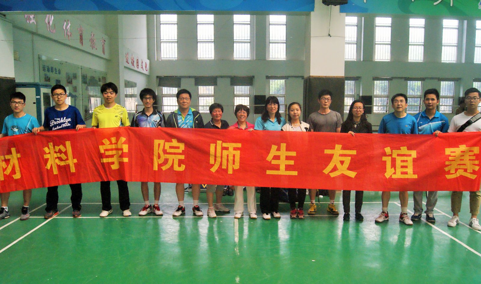 为丰富同学们的课外生活,增进师生之间的情谊,2015年4月24日,由材料学院分团委主办、院学生会体育部协办的羽毛球师生友谊赛在万博体育bet 体育馆综合馆举行。参加比赛的同学们按捺不 住内心的激动,早早地在球馆开始热身运动。下午三点,朱宏,金江,张一峰,赵芳霞,胡秀兰等老师也准时到达羽毛球馆,比赛正式拉开序幕。